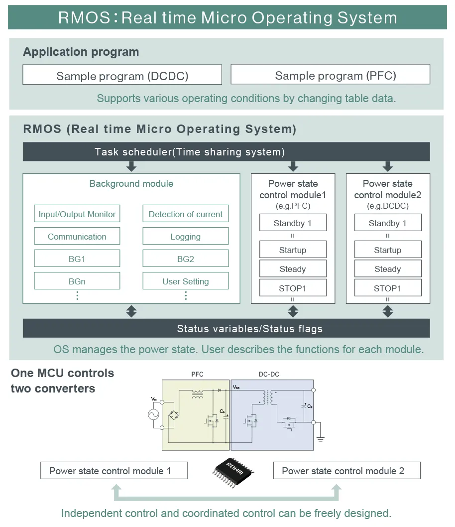 ROHM provides Operating System for Switching Power Control MCU "RMOS" to solve customer issues.