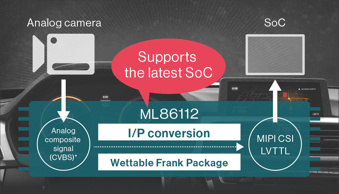 The new product ML86112 is a compact video decoder LSI for automobiles that convert analog video signals into digital data.