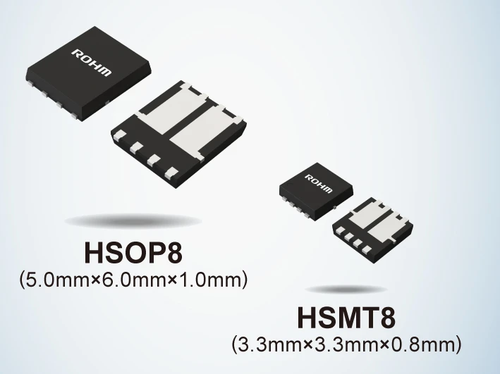이러한 상황에서 로옴은 최신 프로세스를 사용하여 Nch, Pch의 MOSFET 칩을 개발하고, 방열성이 우수한 이면 방열 패키지를 채용함으로써 업계 최고의 낮은 ON 저항을 실현한 새로운 시리즈를 개발하였습니다.