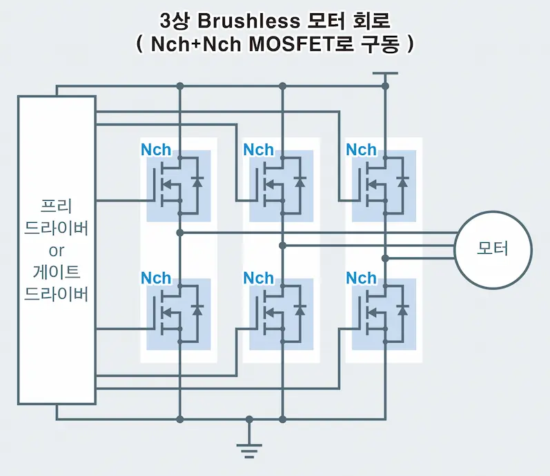 ■HP8KE6 (Nch+Nch 듀얼 MOSFET)과 BM64300MUV (3상 Brushless 모터용 프리 드라이버 IC) 등