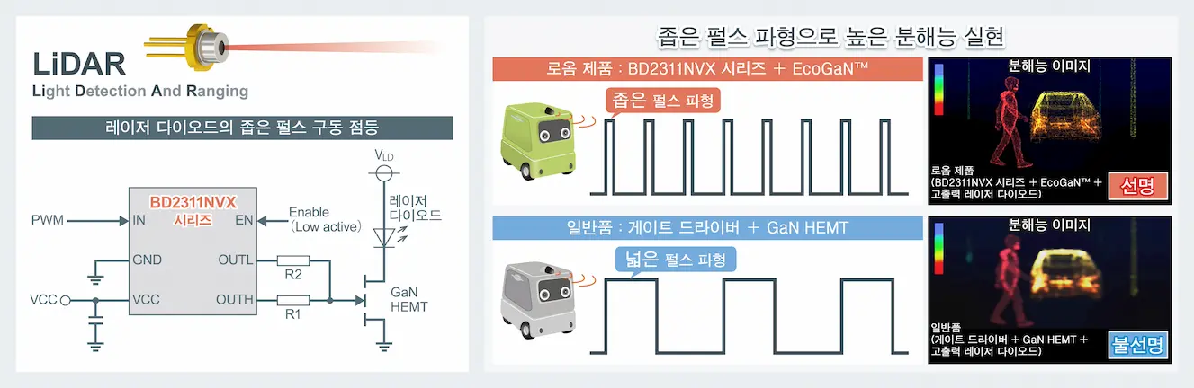 신제품 및 로옴의 150V GaN HEMT 「EcoGaN™」, 고출력 레이저 다이오드를 탑재한 LiDAR용 레퍼런스 디자인을 로옴 Web에서 공개하고 있습니다.