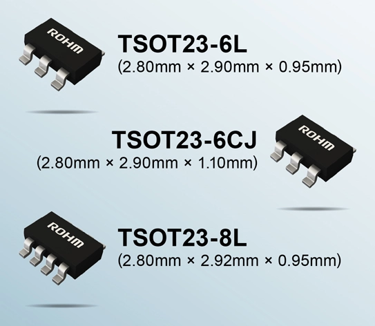 최근, 민생 / 산업기기에서는 어플리케이션의 기능 증가에 따라 기판의 스페이스 절약화가 요구되어 소형 DC-DC 컨버터 IC의 탑재율이 증가하고 있습니다. 또한, 대기전력의 삭감도 큰 과제로 중요시됨에 따라 DC-DC 컨버터 IC에는 저전력 시 (경부하 시)의 고효율화도 함께 요구되고 있습니다. 로옴은 이러한 시장 요구에 대응하여 기존의 SOP-J8 패키지 제품보다 더 작은 소형 패키지로 고효율화를 실현한 제품을 개발하였습니다.