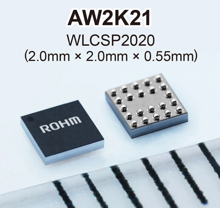로옴 주식회사 (본사 : 교토)는 2.0mm×2.0mm 패키지 사이즈로 업계 최고의 낮은 ON 저항※1 2.0mΩ (Typ.)의 Nch 30V 내압 공통 소스 구성의 MOSFET※2 「AW2K21」을 개발하였습니다.