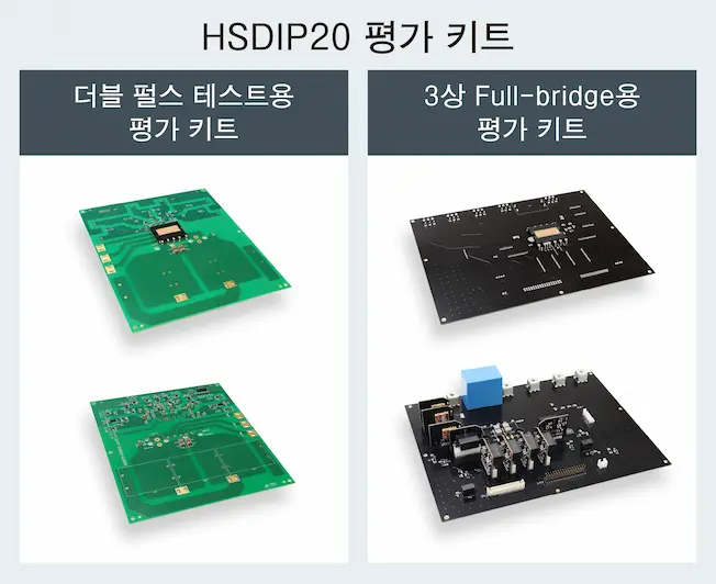 로옴은 자사 내에 모터 시험 장치를 구비하는 등, 어플리케이션 레벨의 서포트에 주력하고 있습니다. HSDIP20의 제품을 신속하게 평가하고 도입할 수 있도록 각종 서포트 컨텐츠를 구비하여, 시뮬레이션 및 열 설계까지 포함한 풍부한 솔루션으로 신속한 채용을 서포트합니다. 또한, 더블 펄스 테스트용과 3상 Full-bridge용으로 2종류의 평가 키트를 구비하여, 실제 회로 조건에 가까운 상태에서 평가가 가능합니다.