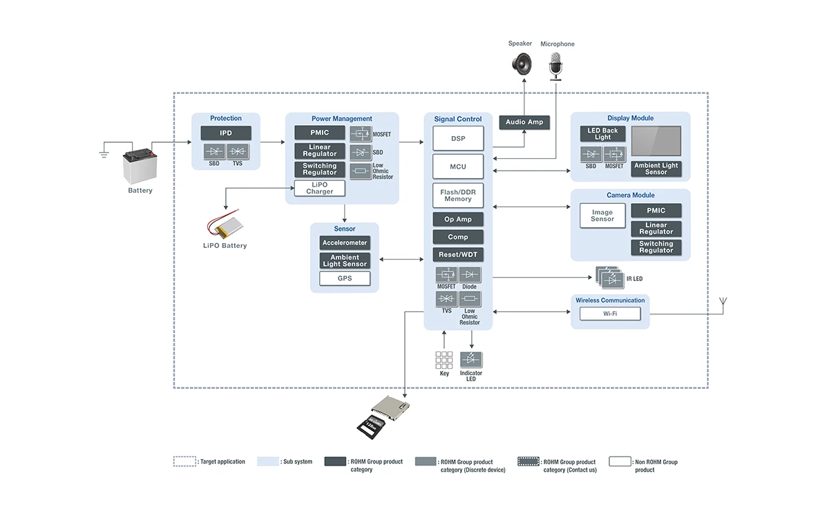 로옴은 Wettable Flank 패키지를 채용한 초소형 소신호 디바이스 (MOSFET, SBD)를 비롯하여 소형 · 고신뢰성 범용 제품을 다수 구비하여, 안심할 수 있는 안전한 고기능 어플리케이션 실현에 기여합니다.