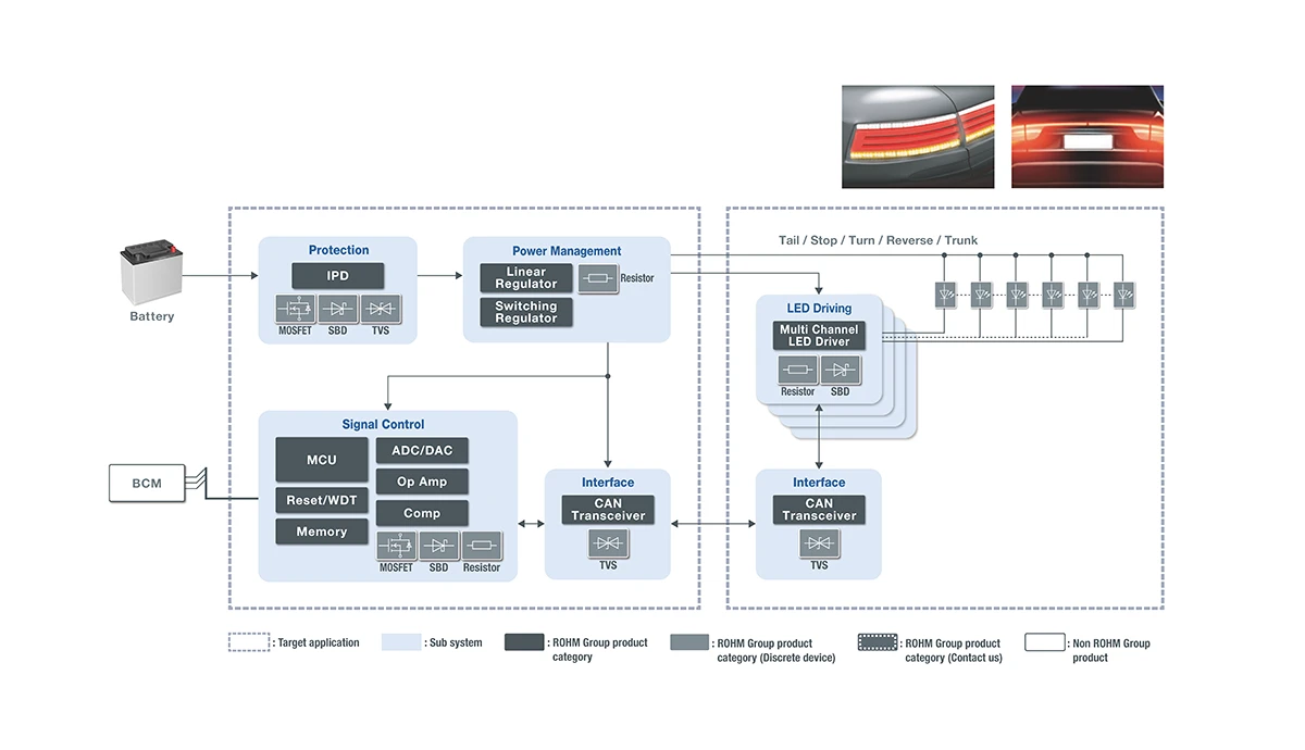 로옴은 기능 안전에 적합한 고기능 LED 드라이버 IC를 제공함으로써 애니메이션 램프의 다채로운 디자인을 실현합니다.