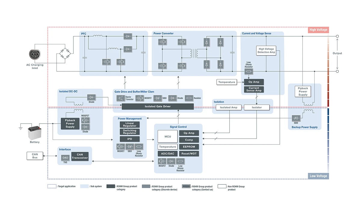 로옴은 SiC 디바이스와 회로 토폴로지를 통해 대전력 및 단시간의 단방향 충전을 실현하여 xEV의 편리성을 향상시킵니다.