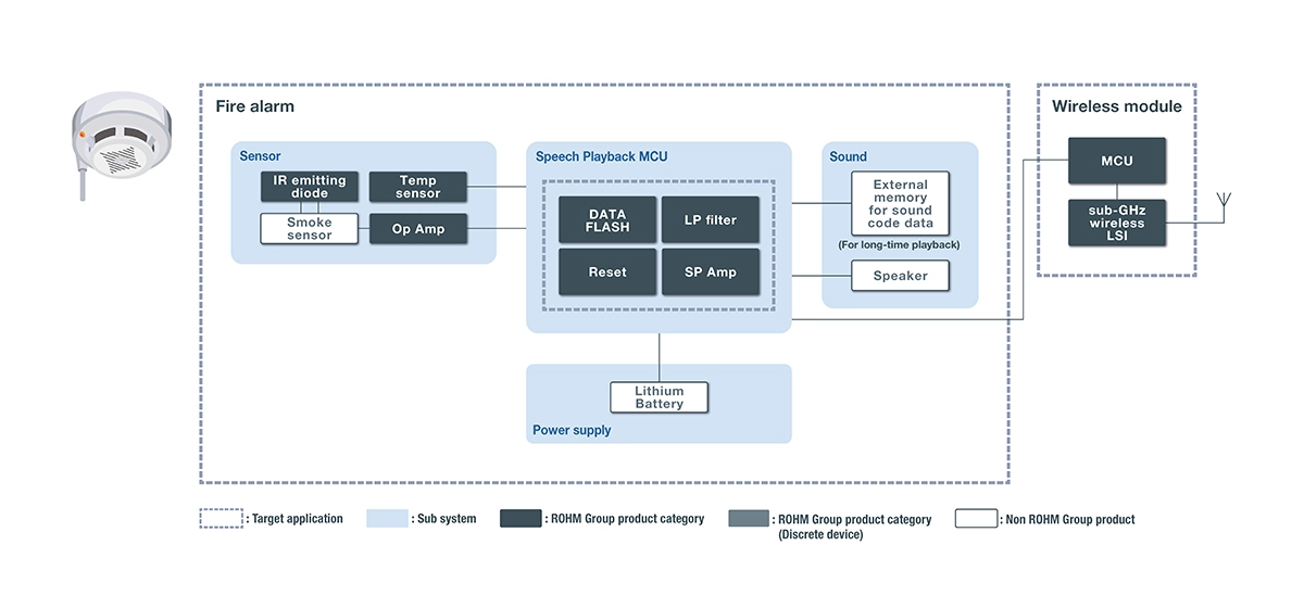 가정용 화재 경보기는 저소비전력의 신호 처리 · 제어 회로, 높은 환경 내성 등이 요구됩니다.