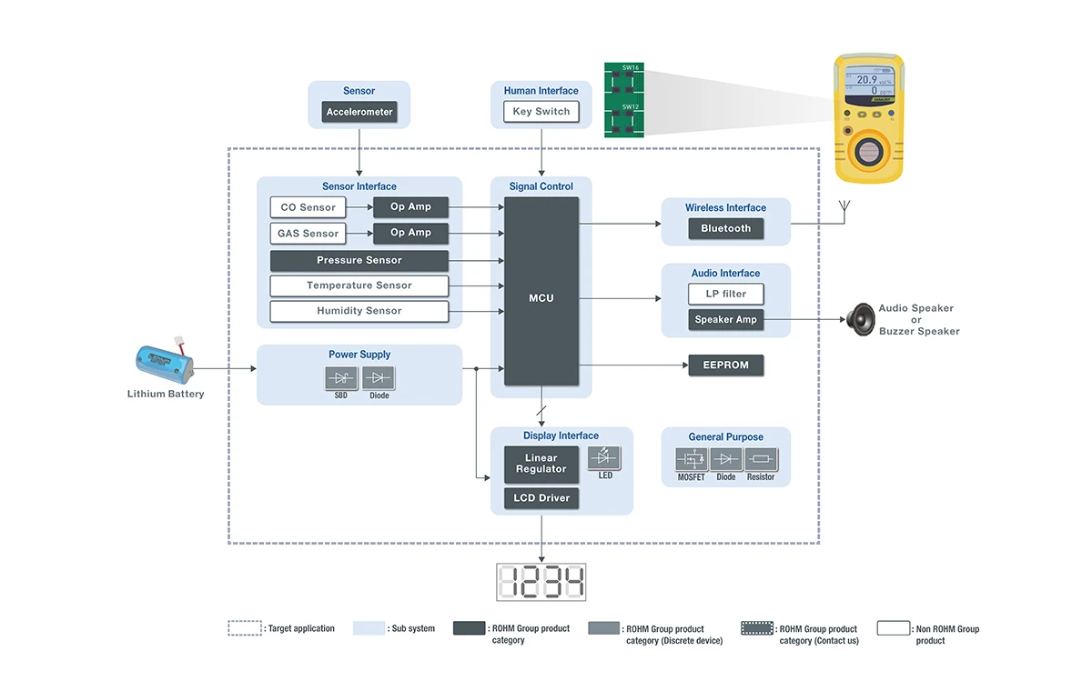 가스 누출 검출기는 연료용 가스 누출이나 불완전 연소로 인해 발생한 일산화탄소 (CO) 등 유해 가스를 검출하여 경보를 발령하는 장치로, 안전한 점검 작업을 위해 고정밀도 · 고신뢰성이 요구됩니다. 또한, 경보 내용을 음성으로 통지하거나 통신 기능을 통해 데이터를 축적함으로써 이상 징후 예측에 활용하는 등 인간 친화적인 인터페이스도 요구됩니다.
